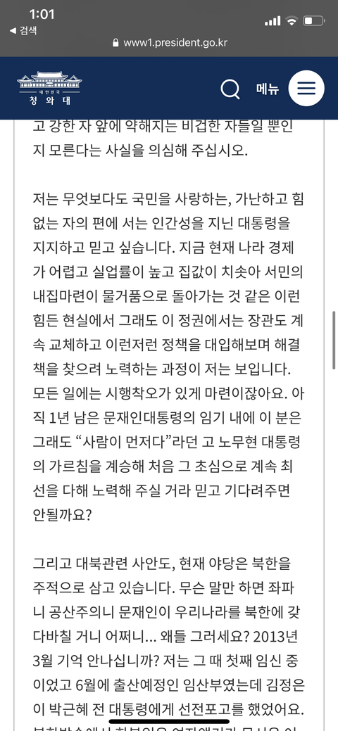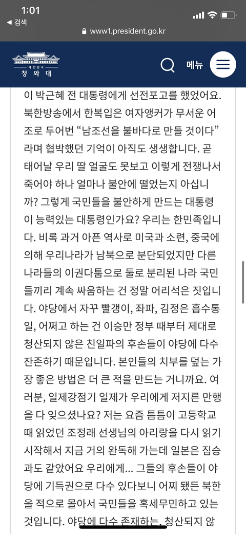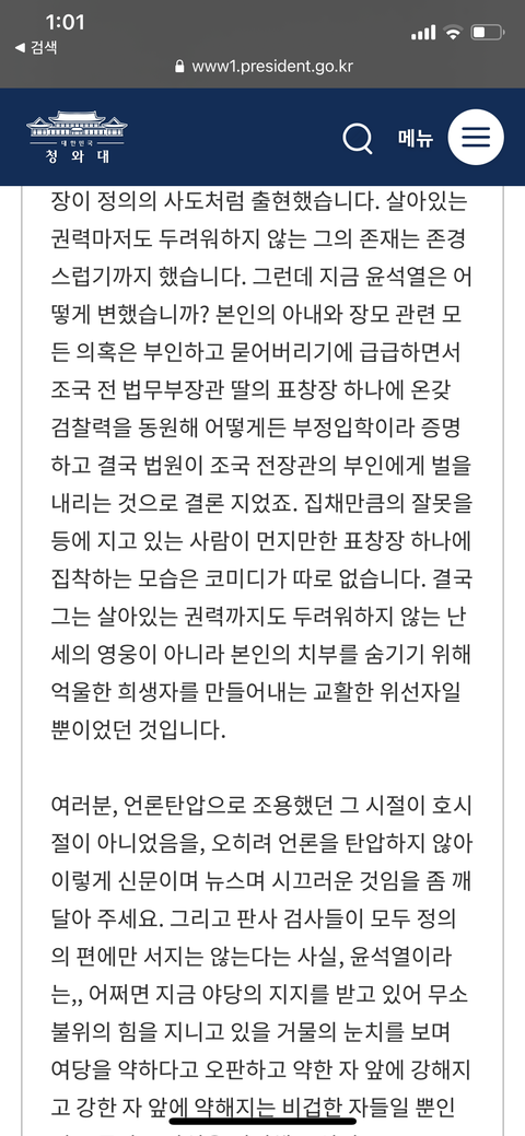 저는 마흔이 되는 한 가정의 안주인이자 중학교 음악교사예요. 하지만 우리나라가 여느 다른 나라보다 더 잘 살기를, 대한민국 국민 모두가 조금씩이라도 더 행복해지기를 비는 사람으로서 요즘 국정이 너무 험하게 흘러가고 있는 듯한 안타까움을 느끼게 되었어요. 그래서 이렇게 문대통령님께 힘을 실어 드리고자 처음에는 국민신문고에 비공개 민원으로 올렸던 글을 더 많은 국민들과 나누고 싶은 마음에 (특히 적폐 언론 및 사법기관에 의해 눈과 귀가 가려진) 국민청원에까지 올리게 되었습니다.
