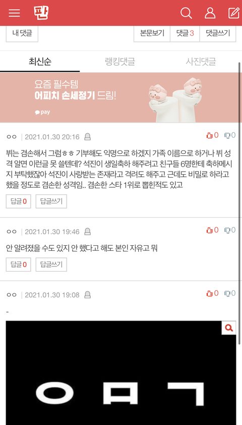 연옌들 코로나 때 기부 많이 했고 특히 대구 심각했을 때 슈가도 했는데 뷔는 아예 안함 의무는 아니지만 할줄알았음