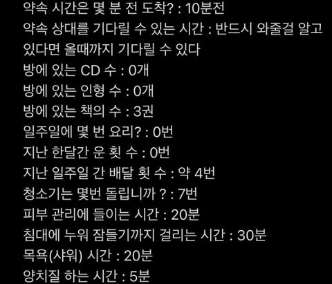 약속 상대를 기다릴 수 있는 시간 봐바....나진짜 대가리 빡빡 깨는중이다......어떻게 저런 생각을 할수가 있는거지??
