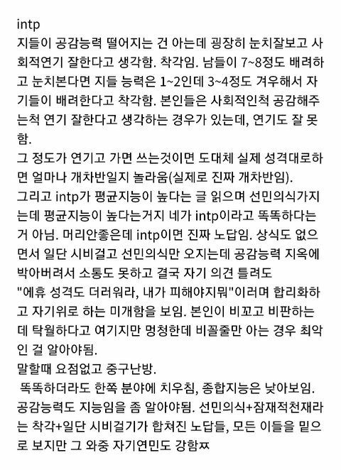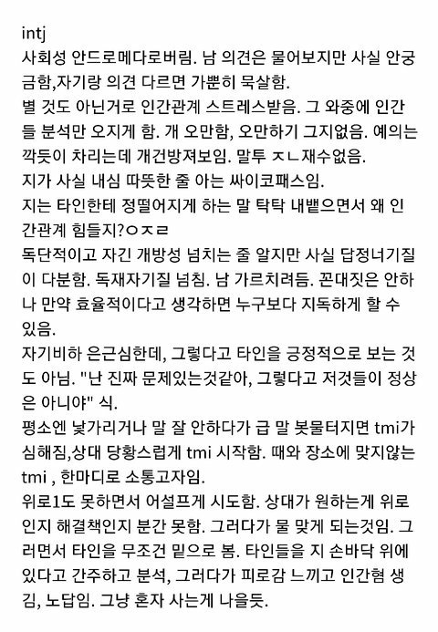 mbti짤이 백오십장 정도 있는 나로썬 아주 기쁠일 암튼 mbti 유형별 단점짤 뿌리고 간다