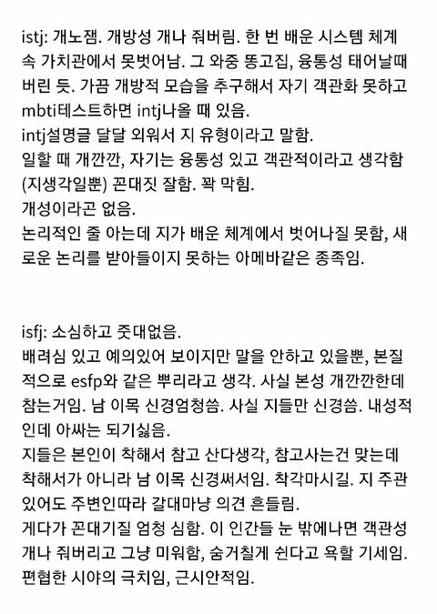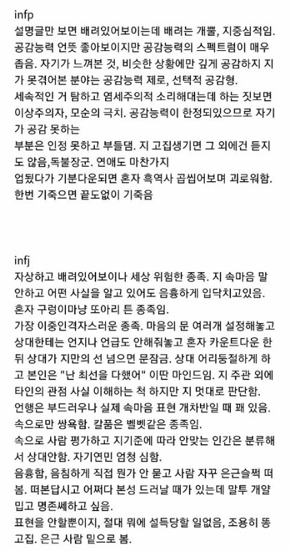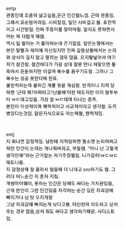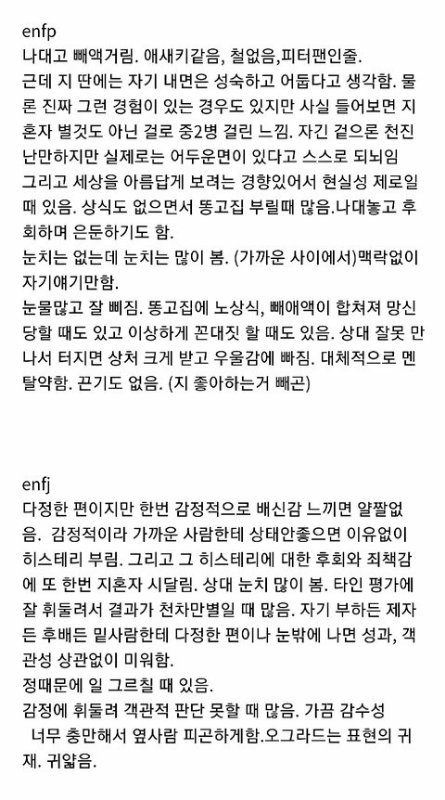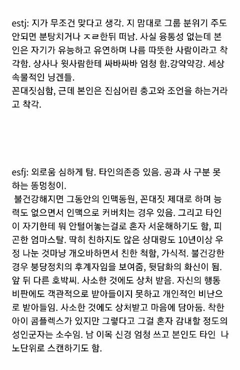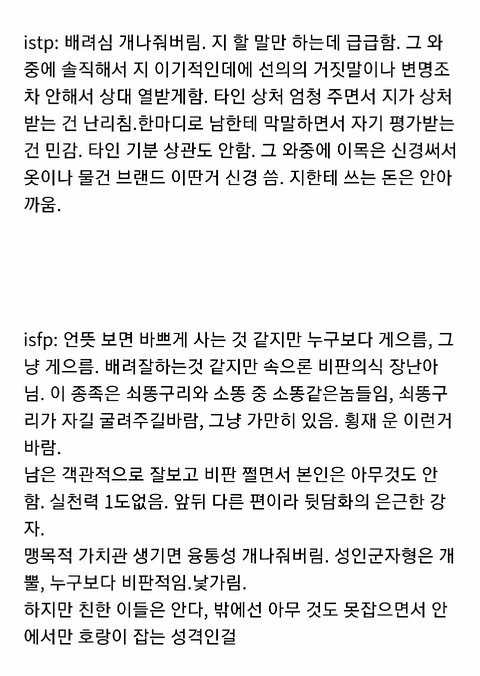 +)얘들아 요건 각 유형들의 극단적 단점들만 모아온 짤이니 넘 슬퍼하지말어
