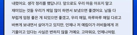이 글 읽고 예림이의 소중한 친구들 청춘의 친구들도 뭘하던 행복하길 함께 응원해줬으면 좋겠어 ㅎㅎ