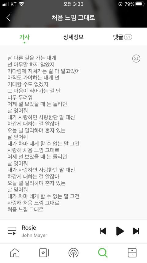 처음느낌그대로 라는 이소라 노래를 설정했더라구요