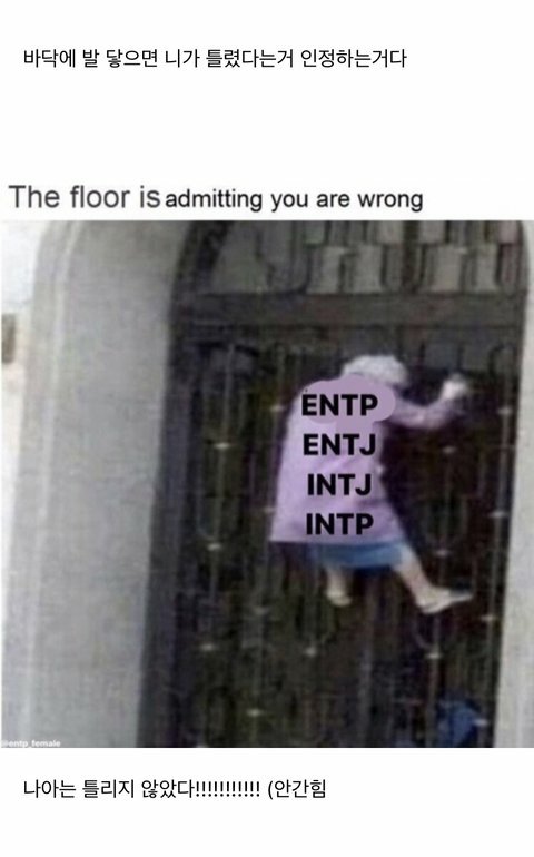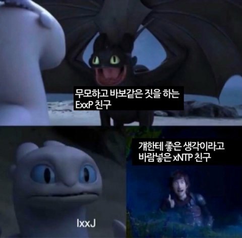 하하 하나 더 가지고 왔어 내 기준 꽤나 웃긴 짤들로 엄별해서 가져온거다 내가 entp라서 엔팁짤이 좀 많다