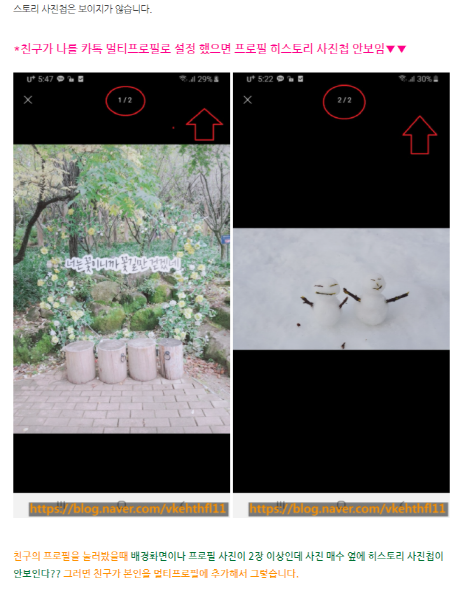 프로필 사진이 2장 이상이면 기본프로필에서는 프로필 히스토리 사진첩이보이는데 멀티프로필에서는 프로필 사진이 2장 이상이라도 아래 사진 처럼 프로필 히스토리 사진첩이 보이지가 않음.