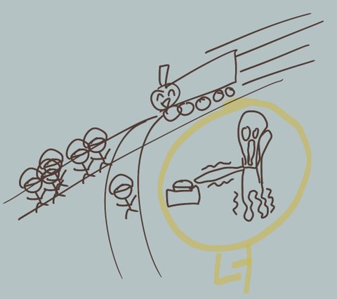 니가 버튼을 누르면 인부 1명만 일하고 있는 선로로 기차가 방향을 틀게된다.