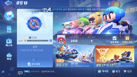 준규 따라서 카트 깔아서 하다가 클럽같은거 잇길래 트레저 찾아서 가입함;;;