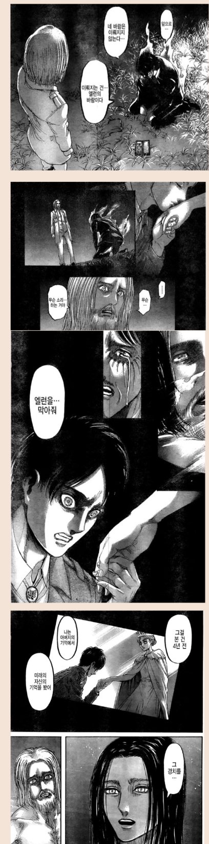 그리샤가 에렌 지크 시간여행 할때 지크한테 "에렌의 바람대로(땅울림) 이루어진다. 에렌을 막아달라"고 말했었는데 애초에 자기가 에렌한테 거인계승 안하면 되는건데도 에렌을 숲속으로 데려가서 시조와 진격을 계승해줬다? 지크한테 그 말을 하고난 후 그리샤는 땅울림 뒤에 펼쳐지는 <아름다운 경치>(15세 에렌이 히스여왕 손에 키스했을때 본 것)을 본거임. 그러니까 땅울림을 감수해서라도 쟁취해야만 하는 그 경치를 위해 에렌한테 시조랑 진격 계승시켜준거고. 에렌은 자유를 향해 나아가는 존재이고 땅울림 후에는 파라디섬을 억압하는 존재가 사라질 정황상 <아름다운 경치>이라는건 사람들이 자유롭게 살아가는 세상이라고 예측할수있음. 그래서 진격 세계에 결국 행복한 세상은 올거라는게 요지다!!