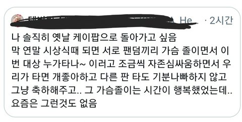 ㅋㅋㅋㅋㅋㅋㅋ 방탄하나 매장하겠다고 구씹을 쳐만드네. 케이팝이 재미없어진건 방탄탓이 아니예요.아이돌중에서도 뜰놈들은 늦게라도 주목받아서 다 뜨고, 지금세대는 1,2세대와는 다르게 미디어의 영향으로 돌판 고인물 그사세 되가는건 다 알음. 그리고 대상받은그룹 서로 따뜻하게 축하해줬다고? 이건 ㄹㅇ 어이가 없어서 할말이없노