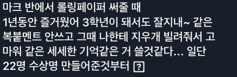 그때 나한테 지우개 빌려준 거 고마워 ㅣㅋㄱㅋㄱㅋㄱㅋㄷㅋㅋㅅㅂ 진짜 이럴 것 같음