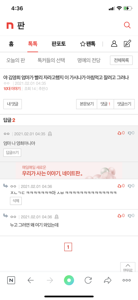 댓글 많은 톡