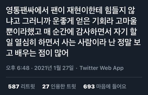 '운좋게 얻은 기회라 고마울 뿐'이라고 했대ㅠ