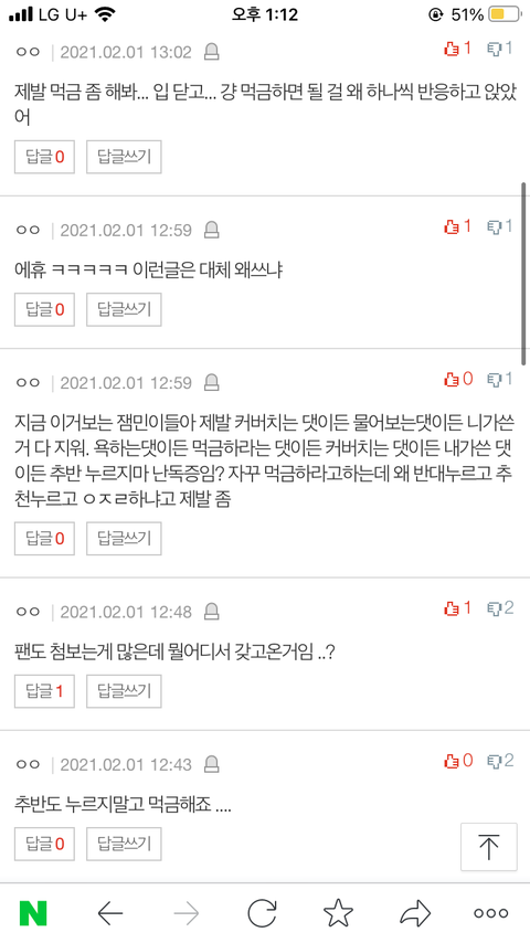 먹금 댓 위에 먹금 써서 댓늘리는 사람 팬코지 ..?