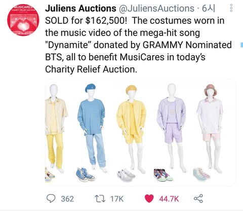 타니들 뮤비의상 경매한거