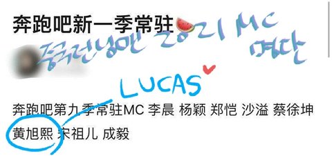 웨이보에 중국판 런닝맨 2021년 엠씨명단 올라왔는데 욱희있당