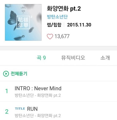 화양연화 파트2의 인트로 곡 제목이 NEVER MIND