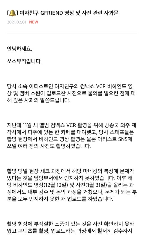 쏘스 공식입장 떴어.