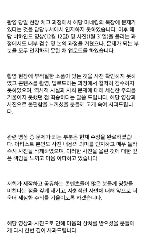 솔직히 무식한거 너네임. 애초에 몰랐을 수 있는거고, 촬영한 카페에 있는것도 문제 될 수 있음. 쏘스 공식입장 이렇게 써보는것도 처음이라 늦었던건 사실이야. 이제 그만하자. 덕분에 내가 다시 깨달았어.