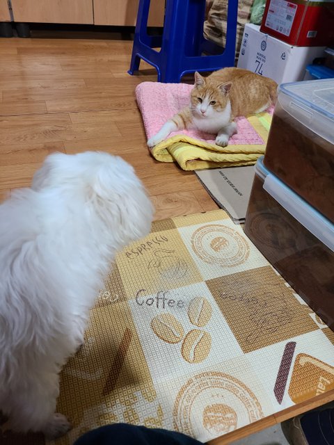 (지난글에 흰강아지는 냥이 첨본다고해서