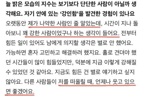 지수 인터뷰 보면 가치관 진짜 본받고 싶음