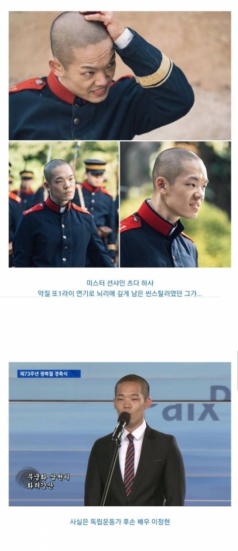 너네 일본군 연기한 배우 실제로 독립운동가 후손이신거 알고있었냐 일본의 악행을 더 잘 알아서 연기를 그렇게 잘했나봐