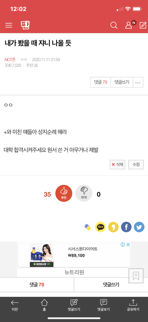 응 그래 수험생인데 하루종일 폰만 한 내 잘못이지
