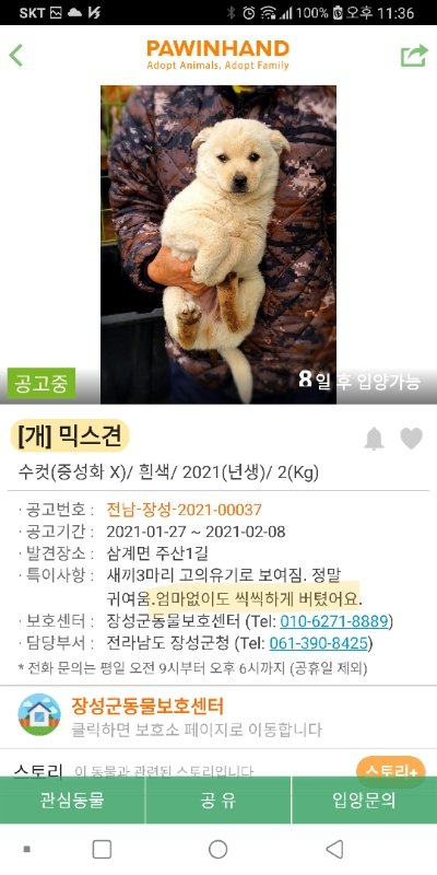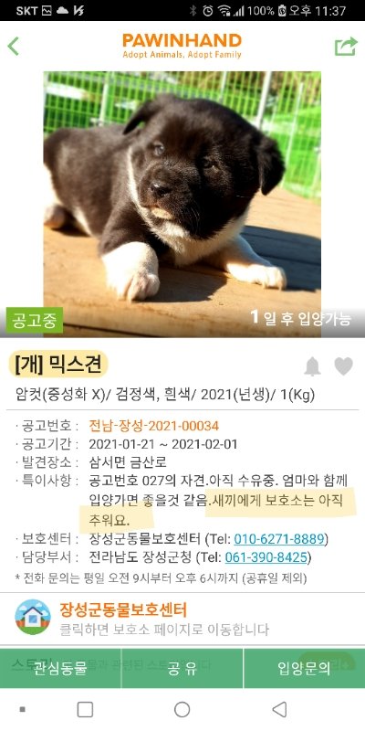 새끼에게 보호소는 아직 추워요.. ( 공고 하루밖에 안남았다ㅠ )