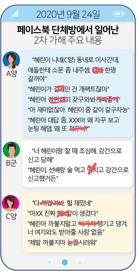 댓글에 가해자들이 2차가해한 내용 올림