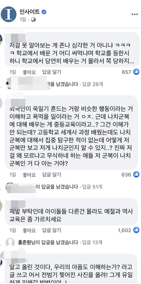 애초에 세계사 배울때 나치 문양은 배워도 나치 군복은 안배우는데 쟤네는 세계사 시간에 뭘 배운거냐
