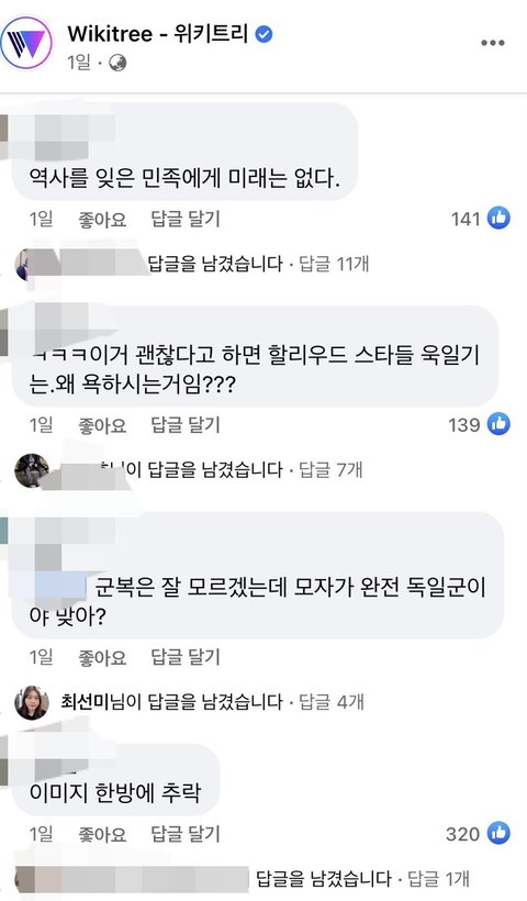 나도 나치 군복? 그런거 잘 몰랐어서 잉 그냥 실수했네.. 이러고 말았는데 판 반응도 괜찮았던거같은데 페북에서는 걍 개까이네 이미지 어캄