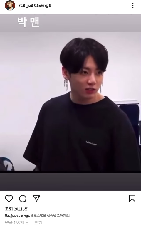 스윙스 인스타에 박제된 정국이