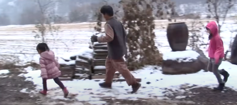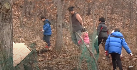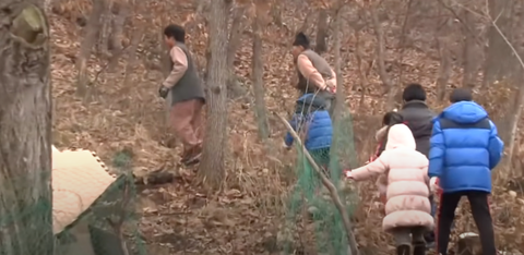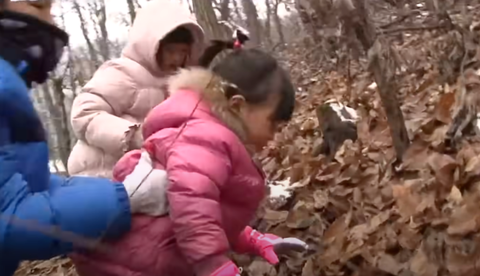 눈이 오던 날 오후에 청학동에서 다같이 산을 타기 시작함