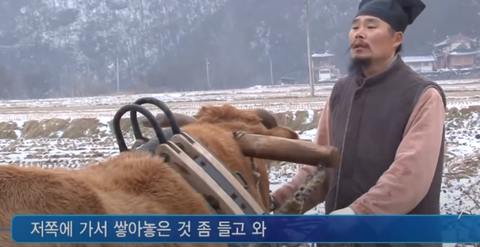 다음날 소 달구지를 준비하는 훈장님.