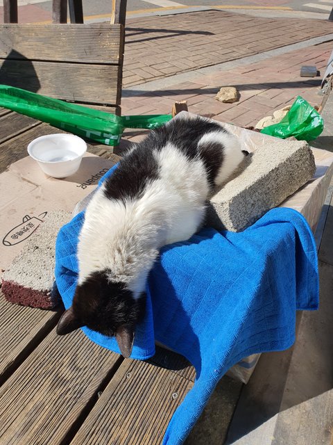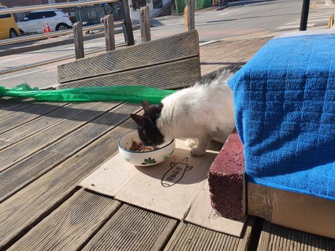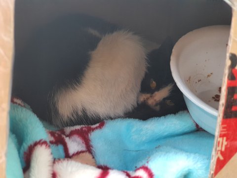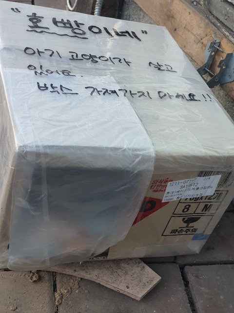자꾸 한데서 재채기하고 콧물도 흘리기에 급하게 박스에 무릎담요를 깔아주었는데 파지를 줍는 분이 담요는 바닥에 던져버리고 박스를 홀랑 가져갔드라구요