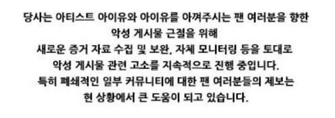 "당사는 아티스트 아이유와 아이유를 아껴주시는 팬 여러분을 향한