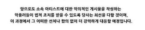 "앞으로도 소속 아티스트에 대한 악의적인 게시물을 작성하는