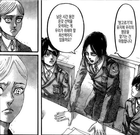 근데 한지 이거 직후에 왜이렇게 에렌 뚫어져라 쳐다봄? 얘가 104기 애들을 희생시키지는 않겠다고 생각했다는걸 암시하는건가?