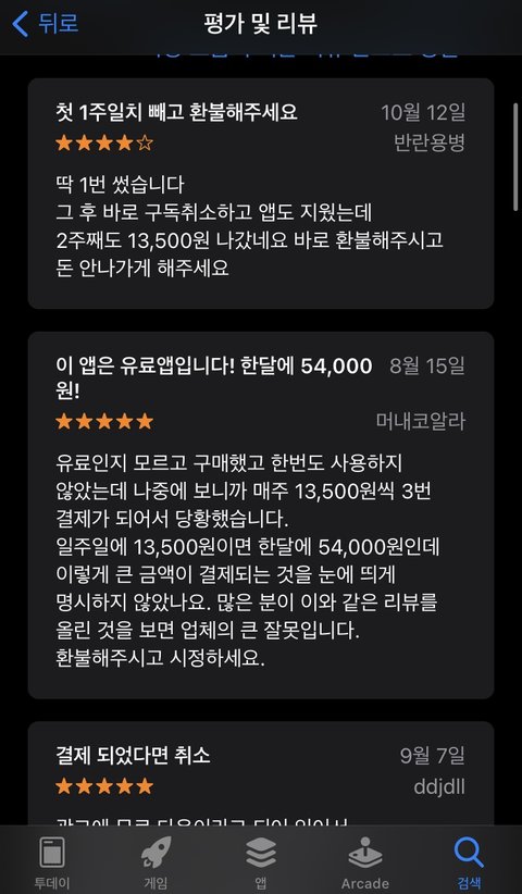 제 잘못일 수도 있지만 하나 신경쓰이는 점은 제가 구독이라는 시스템과 한달 무료결제 후 자동 결제가 되는 시스템 개념 모두 잘 알고 있고, 그래서 앱 다운로드 후 이런 상황에 있어서 항상 잘 확인해왔었습니다....