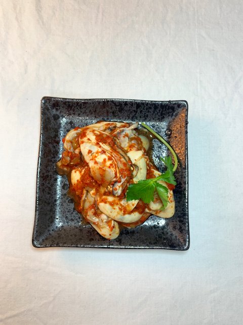 양념: 굴을 민물로 깨끗이 씻어 물기를 빼고 액젓 살짝 설탕 조금, 고추가루 입맛대로 팍팍, 다진마늘, 통깨가다랑어 회가다랑어 초밥.