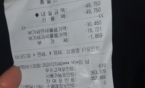 처음영수증에 포인트 적립자가 분명 김*수였는데