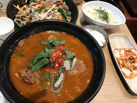 오늘 저녁은 한인 식당에서 감자탕과 국수, 족발 냉채을 아들과 둘이 푸짐하게 먹었어요 ^^