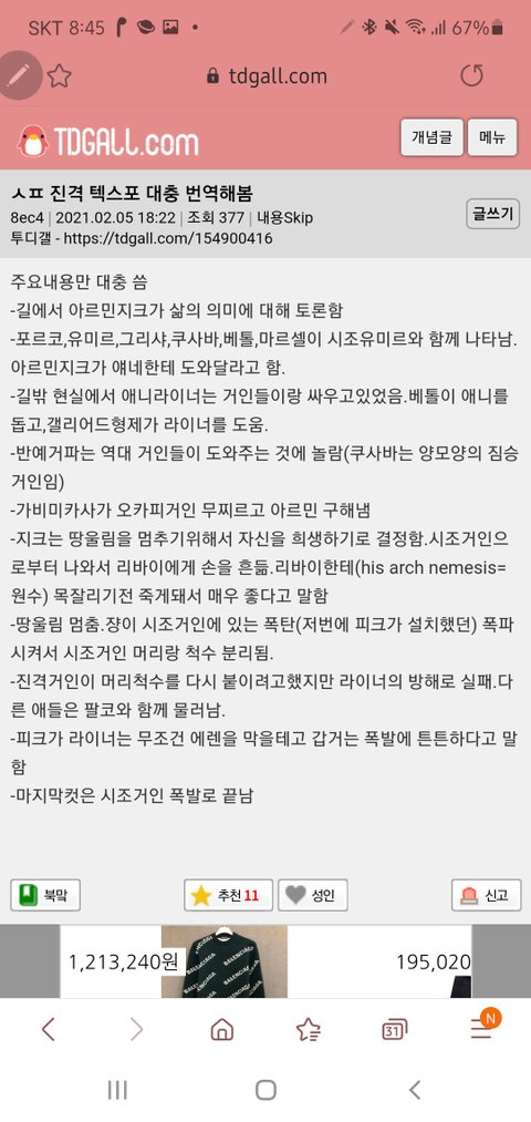 난 아르민 말고 엘빈이 살았으면 좋았을듯 (ㅅㅍ)