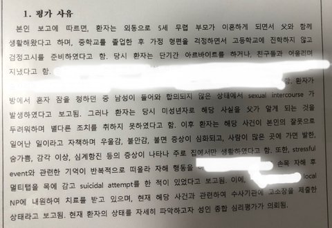그러다 며칠전에 제가 과거 미성년자때 겪었던 성범죄와 배경,그리고 정신과 육체적인 후유증으로 지금까지 치료와 상담을 받은지 수개월이 지났는데도 ..