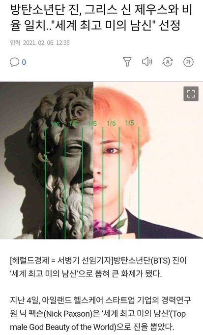 방탄소년단 진, 그리스 신 제우스와 비율 일치