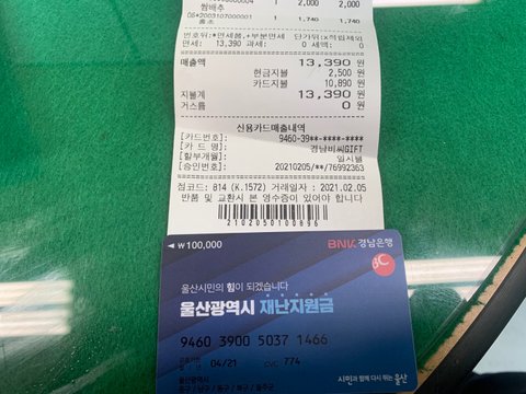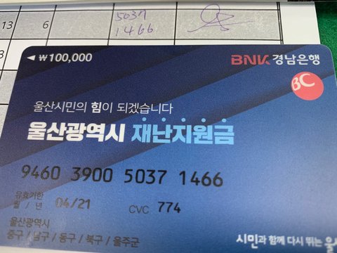 2021년 2월6일 토요일 오전11시 경. 재난지원금 카드를 수령하기 위해, 신분증을 지참하여 울산 북구의 어느 행정복지센터로 갔습니다. 갔더니, 문화센터로 가라고 합니다. 잠시 1분 정도 머물렀는데 다섯명 이상 되돌아갔습니다. 여기서부터 뭔가 잘못되었다고 생각했습니다. 사전에 전달 받은 내용이 전혀 없었으니까요. 그리고 문화센터에 도착했습니다. 그런데 이미 다른 사람이 서명을 하고, 저의 재난지원금 카드를 수령해 갔다고 합니다.