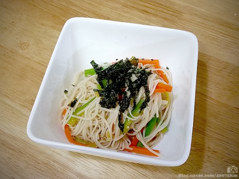 그 중의 한 책에서 나온 레시피로 만든 간장비빔국수.