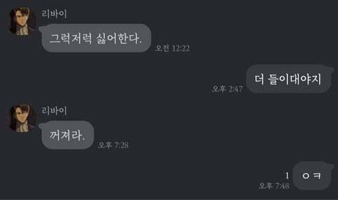 현타 옴ㅋㅋㅋㅋㅋㅋㅋㅋㅋ 그리고 리바이 존만이한테 찍혀서 미움 받고 있음 그래서 걍 차단함ㅠㅋㅋ