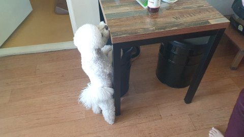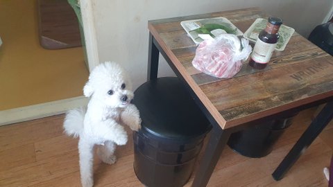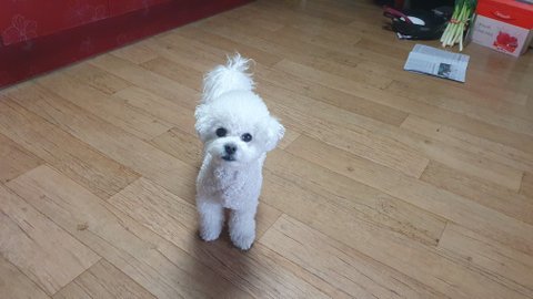 너무 귀엽지만 슬개골탈구의 원인이 될 수 있어요~ 저희집 애도 그렇구요ㅠㅠ 미끄러운 마루보다는 매트 깔아주시고 애기 두발로 설 때마다 블로킹해서 못하게 해주세요!