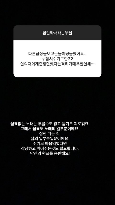 '잠깐 쉬는 것. 삶의 일부분일 뿐이에요.