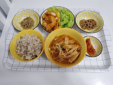 혼자 하루종일 집에 있는 중학생 아들을 위해 매 끼니라도 지겹지않게 해주고 싶은 엄마의 밥상 이었습니다.
